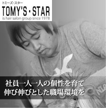 顧客、株主、取引先、そして社員と、会社は参加する全ての人々の共有物であり、社員一人一人の個性を育て伸び伸びとした職場環境の中でトミーズグループに集う人々が共存共栄していくことを理念としています。そして、21世紀に入り事業ドメインを新たに「美の提案する人財育成業」とした上で、人間として、社会人として美容師としての職業観・人間観・人生観を高める為に、社内教育、社外教育に重点課題をおき「育てよう感謝の心」を達成する事を最終目的とし日々取り組んでおります。